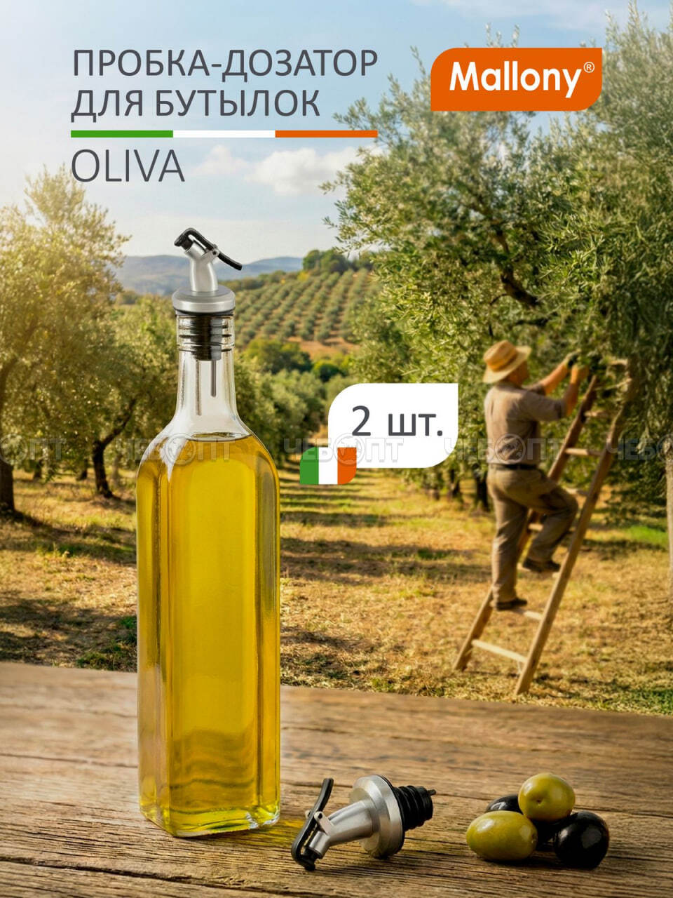 Пробка-дозатор для бутылок 7,5 см в наборе 2 шт, для масла, уксуса и соусов, OLIVA арт. 985988 [200] СКРАП