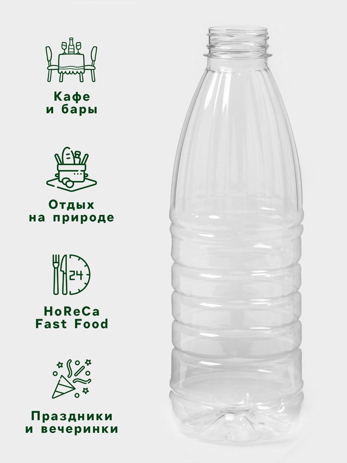 Бутылка одноразовая «Италия», пластик ПЭТ, 1 л, горло 0.38 см, прозрачная