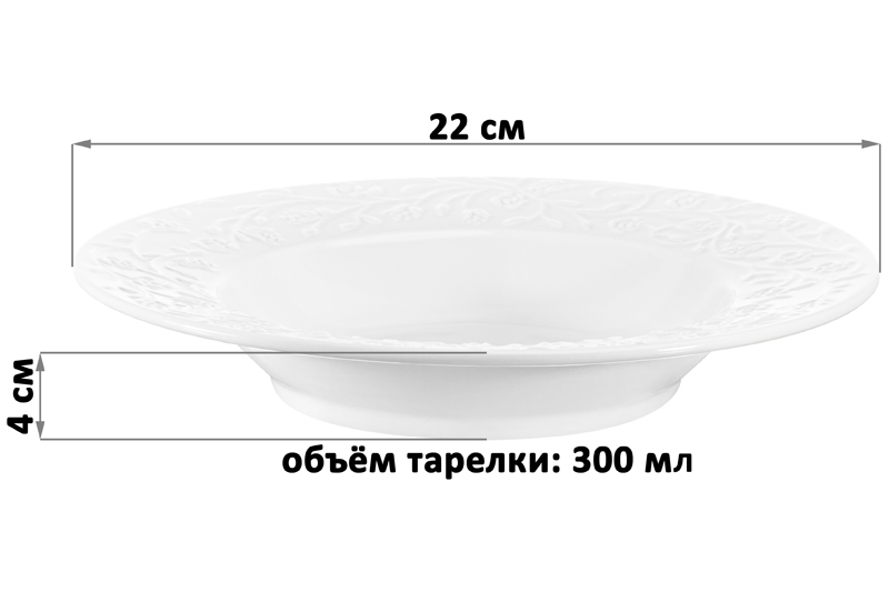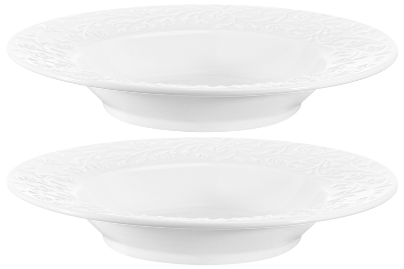 Набор 2 суповых тарелок из серии «Веточки-цветочки» от Elan Gallery предназначен для эстетичной сервировки вашего стола. Размер каждого изделия – 22х22х4 см, объём – 300 мл. Выполнены из высококачественного белого фарфора. Он не впитывает цвет продуктов и легко отмывается, благодаря чему надолго сохраняет свою белизну. Поверхность изделий украшают рельефные узоры в виде лиственных веточек с аккуратными цветочными бутончиками. Тарелки подойдут для подачи разнообразных кулинарных изделий: горячих и холодных блюд, закусок, овощей и фруктовых салатов. Они станут незаменимым элементом сервировки завтрака, ужина и вторых блюд на обед. Подойдут для супов, бульонов и каш на завтрак. Благодаря изысканному дизайну мисочки послужат как для повседневной, так и для праздничной подачи угощений к столу. Не рекомендуется применять абразивные моющие средства. Подходят для использования в посудомоечной машине и микроволновой печи. Поставляются в дизайнерской картонной коробке – благодаря ей вам не потребуется дополнительная подарочная упаковка. Фарфоровая сервировочная посуда будет оригинальным подарком для хозяйки, ценящей не только практичность, но и привлекательность. Серия «Веточки-цветочки» от бренда Элан Галерея станет украшением любого кухонного инвентаря и позволит собрать красивый сервиз в едином стиле!