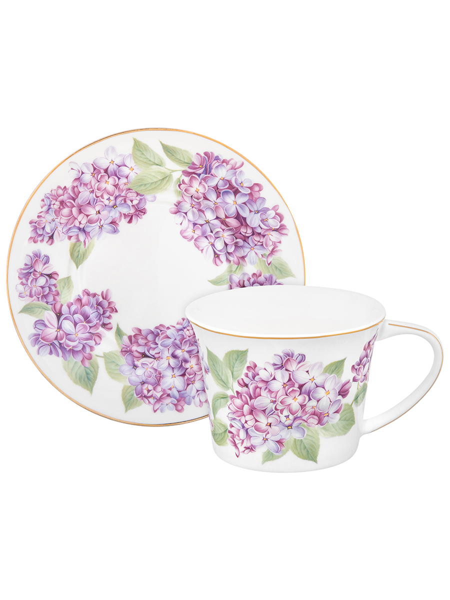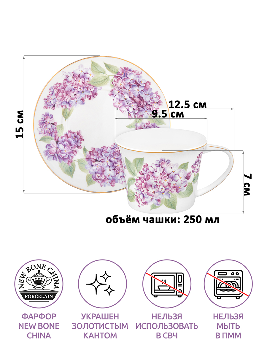 БЫЛО 1006 руб! Чайная пара 2 пр. 250 мл 12,5*9,5*7 см "Сирень" фарфор NEW BONE CHINA