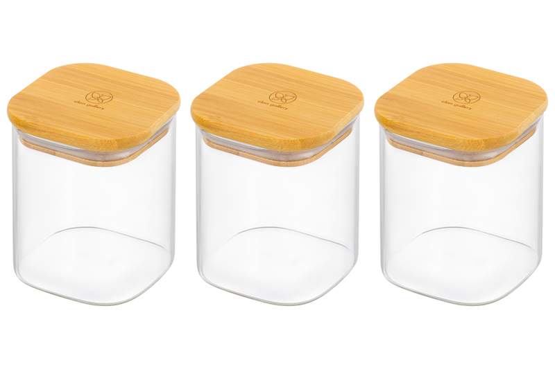 БЫЛО 1014 руб! Набор 3 банок д/хранения 450 мл 8*8*11 см "Crystal glass" + бамбук.крышка с силик. проклад,стекло