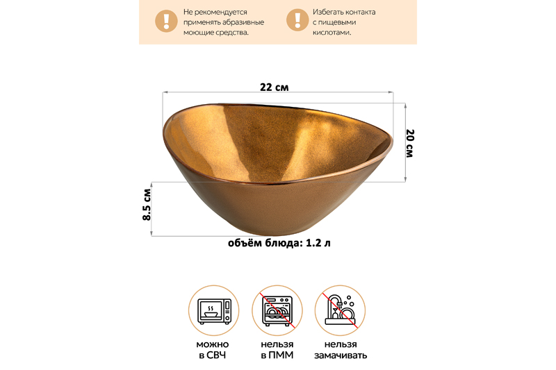 БЫЛО 1028 руб! Салатник 1,2 л 22*20*8,5 см "Бронза" фарфор