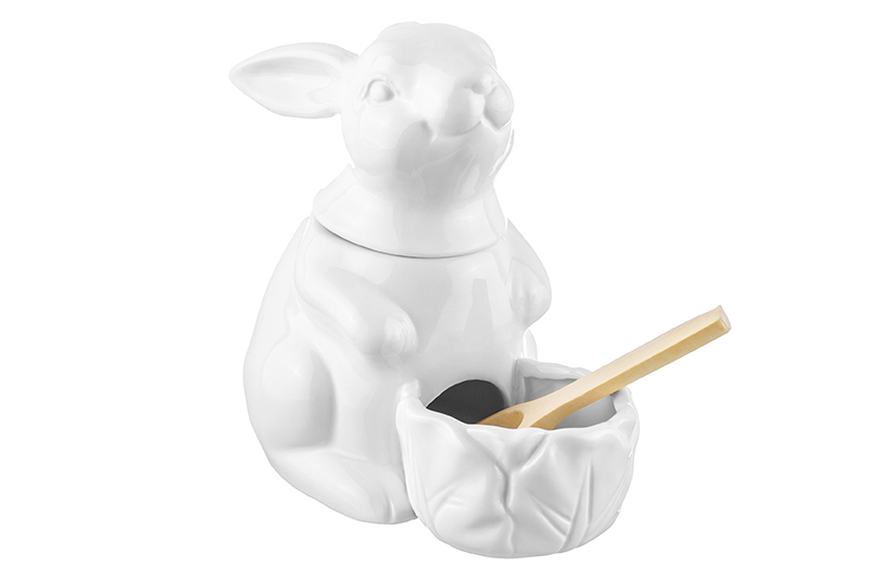 БЫЛО 1037 руб! Банка д/соли 16*9*14 см 400 мл "Заяц" белая + дерев. ложка