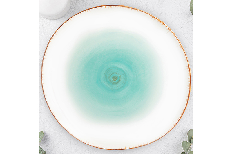 Тарелка из серии «Кантри» от Elan Gallery предназначена для эстетичной сервировки вашего стола. Размер изделия – 30х30х2,7 см. Выполнена из высококачественного белого фарфора. Он не впитывает цвет продуктов и легко отмывается, благодаря чему надолго сохраняет свою белизну. Изделие имеет необычную геометрию и украшено насыщенным бирюзовым оттенком. Серия «Кантри» – это близость к природе, спокойствие и уют. Она подойдёт тем, кто хочет отдохнуть от ритма современной жизни и вернуться к неспешности и размеренности. Сервировочное изделие отлично подойдёт для подачи вторых блюд, закусок и салатов. Заполните её пастой и деликатесами из рыбы, красиво выложите нарезку из свежих овощей и фруктов, сыров и яиц. Положите роллы и суши для вкусного перекуса. Блюдо поможет преподнести разнообразные десерты, сладости и выпечку. Разложите конфеты, разместите по кусочку торта на дружеском или семейном чаепитии. Яркая тарелочка разнообразит интерьер любой кухни или столовой. Не рекомендуется применять абразивные моющие средства. Подходит для использования в посудомоечной машине и микроволновой печи. Поставляется в дизайнерской картонной коробке – благодаря ей вам не потребуется дополнительная подарочная упаковка. Фарфоровая коллекция «Кантри» от бренда Элан Галерея позволит вам собрать необычный сервиз в едином стиле!
