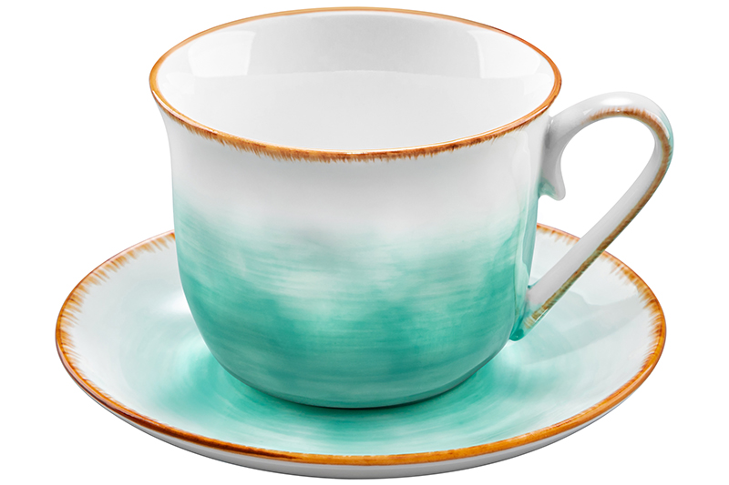 БЫЛО 1074 руб! Чайная пара 2 пр. 450 мл 14*11*8,5 см "Кантри", бирюзовый, фарфор