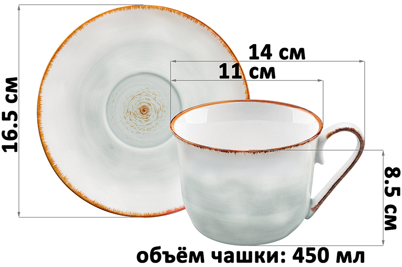 БЫЛО 1074 руб! Чайная пара 2 пр. 450 мл 14*11*8,5 см "Кантри", голубой , фарфор