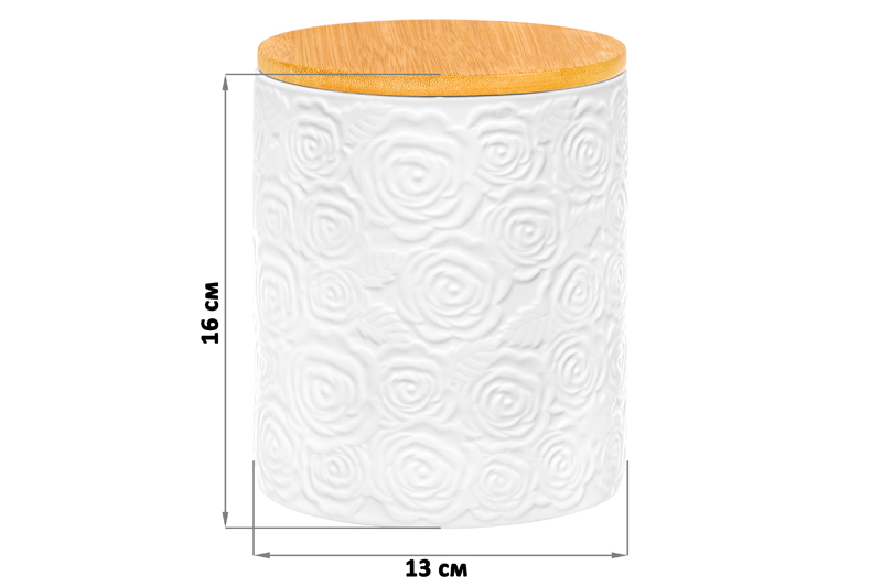 Банка из серии «Розы» от Elan Gallery послужит для организации хранения сыпучих продуктов на вашей кухне. Размер ёмкости – 13х13х16 см, объём – 1,2 литра. Выполнена из высококачественного белого фарфора. Он не впитывает цвет продуктов и легко отмывается, благодаря чему надолго сохраняет свою белизну. Поверхность изделия украшают рельефные узоры в виде пышных бутонов роз. Крышка выполнена из натурального бамбука и оснащена силиконовым уплотнителем. Ёмкость подойдёт для хранения разнообразных сыпучих продуктов. Заполните её сахаром и солью, специями и приправами, чтобы во время приготовления и приёма пищи всё необходимое было под рукой. Засыпьте внутрь чай или кофе, чтобы в любой момент заварить свежий напиток. Храните в ней крупы и макаронные изделия, ягоды, орехи и сухофрукты. Заполните контейнер сладостями и закусками: конфетами, леденцами, пряниками или печеньем. Подайте баночку к столу, чтобы идеально дополнить чайную сервировку! Герметичная бамбуковая крышечка защитит ваши продукты от попадания грязи и пыли. Не рекомендуется применять абразивные моющие средства. Без бамбуковой крышки подходит для использования в посудомоечной машине и микроволновой печи. Бамбук нельзя замачивать! Поставляется в дизайнерской картонной коробке – благодаря ей вам не потребуется дополнительная подарочная упаковка. Фарфоровая сервировочная посуда будет оригинальным подарком для хозяйки, ценящей не только практичность, но и привлекательность. Серия «Розы» от бренда Элан Галерея станет украшением любого кухонного инвентаря и позволит собрать красивый сервиз в едином стиле!