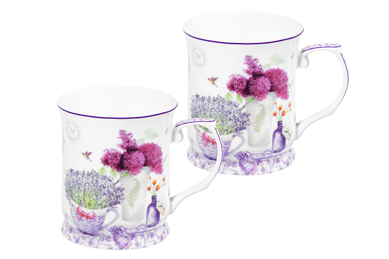 БЫЛО 1123 руб! Набор 2 кружек 400 мл 12,5*9*10 см "Лаванда" NEW BONE CHINA