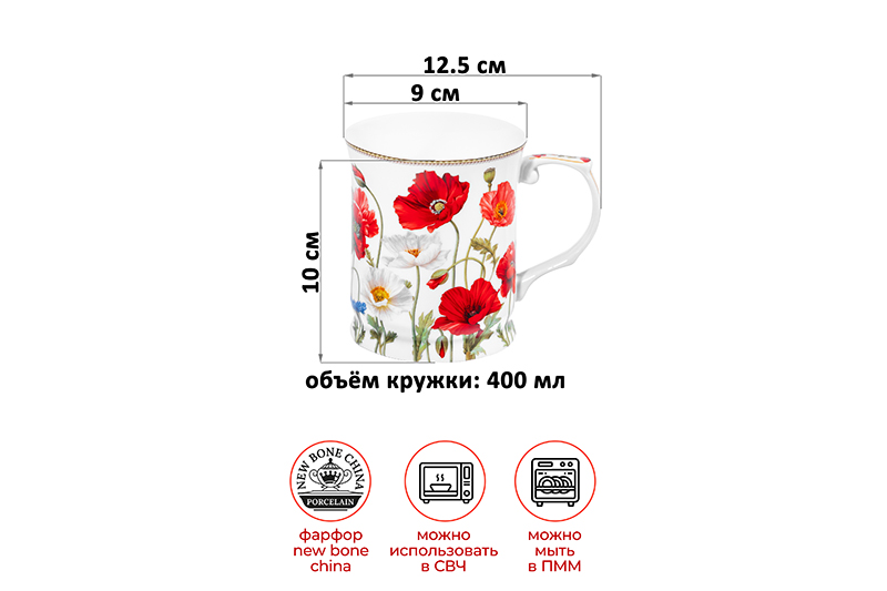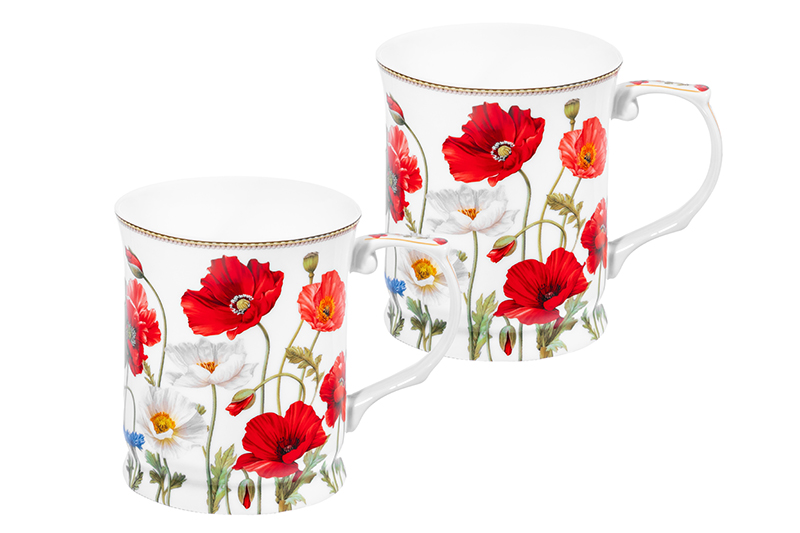 БЫЛО 1123 руб! Набор 2 кружек 400 мл 12,5*9*10 см "Маки" NEW BONE CHINA