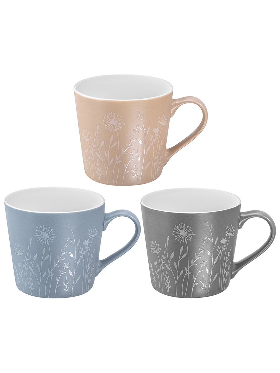 БЫЛО 1134 руб! Набор кружек 3 пр. 400 мл 13*9,5*9 см "Полевые цветы", разноцветные, фарфор