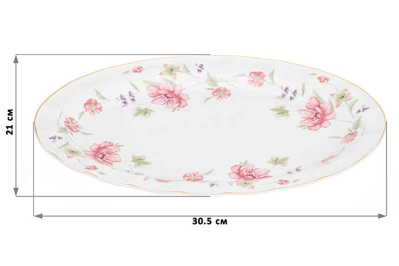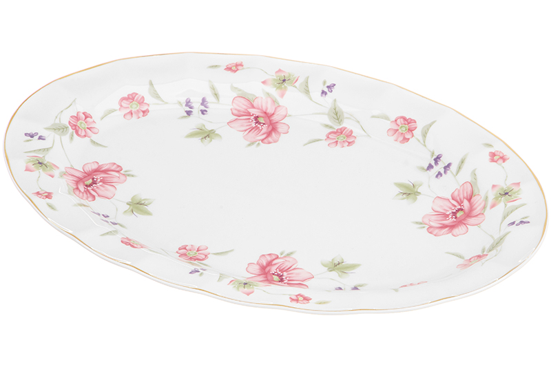 Овальное блюдо из серии «Диана» от Elan Gallery предназначено для эстетичной сервировки вашего стола. Размер изделия – 30,5х21х2,5 см. Выполнено из фарфора нового поколения new bone china, сочетающего в себе изящность и высокую прочность. Такие изделия легко отмываются, поэтому сохраняют привлекательный вид и практичны в использовании. От других видов костяного фарфора new bone china отличается большей экологичностью в производстве. Поверхность изделия украшает воздушный цветочный рисунок и элегантное золотое окаймление. Тарелка подойдёт для подачи рыбных и мясных блюд, а также разнообразных закусок. Благодаря её вместительности можно красиво подать курицу, рыбу и любое мясо. Используйте для сервирования салатов, сырной нарезки, овощей и фруктов, – угостите большое количество гостей. На сервировочном блюде удобно разместить кусочки торта или пирога, конфеты, зефир, а также другие десерты и сладости. Подойдёт для красивой подачи суши, роллов и бутербродов на завтрак. Благодаря нежному дизайну оно впишется в интерьер любой кухни, гостиной или столовой. Не рекомендуется применять абразивные моющие средства. Не использовать в посудомоечной машине, микроволновой печи и духовом шкафу. Поставляется в дизайнерской картонной коробке – благодаря ей вам не потребуется дополнительная подарочная упаковка. Фарфоровая сервировочная посуда будет оригинальным подарком для хозяйки, ценящей не только практичность, но и привлекательность. Серия «Диана» от бренда Элан Галерея подарит вам ощущение мечтательной лёгкости!