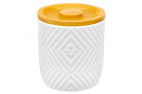 Банка из серии «Айсберг волны» предназначена для организации хранения сыпучих продуктов. Размер изделия – 16,5х15х12 см, объём – 1 литр. Выполнена из высококачественного белого фарфора. Он не впитывает цвет продуктов и легко отмывается, благодаря чему надолго сохранит свою белизну. Поверхность изделия украшают рельефные узоры в виде поперечных волн. Откидная крышка выполнена из натурального бамбука. Красивая ёмкость станет не только функциональным, но и эстетичным дополнением вашего кухонного инвентаря. Заполните её солью или сахаром, специями и приправами, чтобы во время приготовления пищи всё необходимое было под рукой. Насыпьте внутрь чай или кофе, чтобы в любой момент заварить свежий напиток. Подайте её вместе с горячими блюдами, заполнив любимыми специями, чтобы каждый мог приправить пищу по своему вкусу. Удобная ручка на стенке облегчит переноску даже полного изделия, а ручка на крышечке облегчит её открывание. Фарфоровая ложечка поможет набрать необходимое количество продуктов и компактно помещается в банке благодаря выемке на крышке. Наполните баночку любимым печеньем: бисквитным, сахарным или творожным. Послужит в качестве конфетницы: сложите в неё конфеты, шоколад, маленькие пирожные, пряники или любые другие сладости и выпечку. Удобная боковая ручка облегчит переноску, а ручка на крышечке позволит легко открывать её. Благодаря стильному и лаконичному дизайну изделие гармонично впишется в интерьер любой кухни. Не рекомендуется применять абразивные моющие средства. Не подходит для использования в посудомоечной машине и микроволновой печи. Бамбук нельзя замачивать. Поставляется в дизайнерской картонной коробке – благодаря ей вам не потребуется дополнительная подарочная упаковка. Посуда из серии «Айсберг волны» станет отличным подарком для хозяйки, ценящей не только практичность, но и стиль, и поможет собрать сервиз в едином стиле.