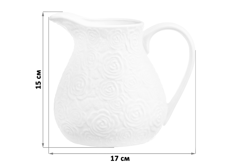 Кувшин из серии «Розы» от Elan Gallery предназначен для эстетичной сервировки стола. Размер изделия – 17х13,5х15 см, объём – 1,2 литра. Выполнен из высококачественного белого фарфора. Он не впитывает цвет напитков и легко отмывается, благодаря чему надолго сохраняет свою белизну. Поверхность изделия украшают рельефные узоры в виде пышных бутонов роз. Наполненный соком или лимонадом, сосуд поможет организовать дружеские встречи и украсит ваш стол. Подойдёт для изящной подачи ваших любимых напитков. Используйте его в качестве молочника – он станет идеальной альтернативой скучным пакетам молока. Заполните чистой питьевой водой или самодельным компотом, эстетично подавайте большие объёмы чая и кофе. Не рекомендуется применять абразивные моющие средства. Подходит для использования в посудомоечной машине. Поставляется в дизайнерской картонной коробке – благодаря ей вам не потребуется дополнительная подарочная упаковка. Фарфоровая сервировочная посуда будет оригинальным подарком для хозяйки, ценящей не только практичность, но и привлекательность. Серия «Розы» от бренда Элан Галерея станет украшением любого кухонного инвентаря и позволит собрать красивый сервиз в едином стиле!