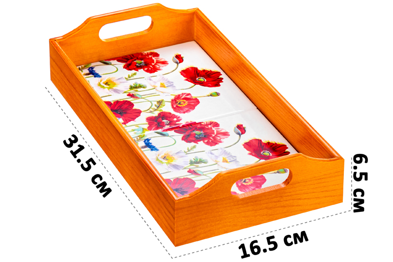 БЫЛО 1217 руб! Поднос 31,5*16,5*6,5 см "Маки" прямоугольный