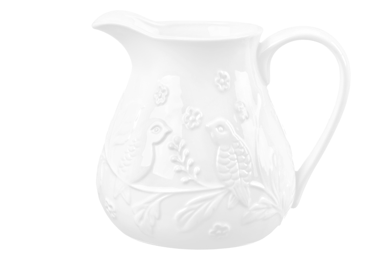Кувшин серии «Птички на ветке» объемом 1,2 л выполнен из высококачественного фарфора с рельефным рисунком. Белоснежный фарфор и изящная классическая форма подходит любой сервировке и добавит уюта в каждый дом. Кувшин может стать прекрасной альтернативой скучным пакетам сока и отлично подходит для сервировки компотов и любых других напитков. В серии посуды из белого фарфора представлен широкий ассортимент товаров для сервировки стола, которые, несомненно, впишутся в любой интерьер благодаря лаконичному дизайну, натуральным материалам и высокой функциональности. Такому подарку будет рада любая хозяйка!