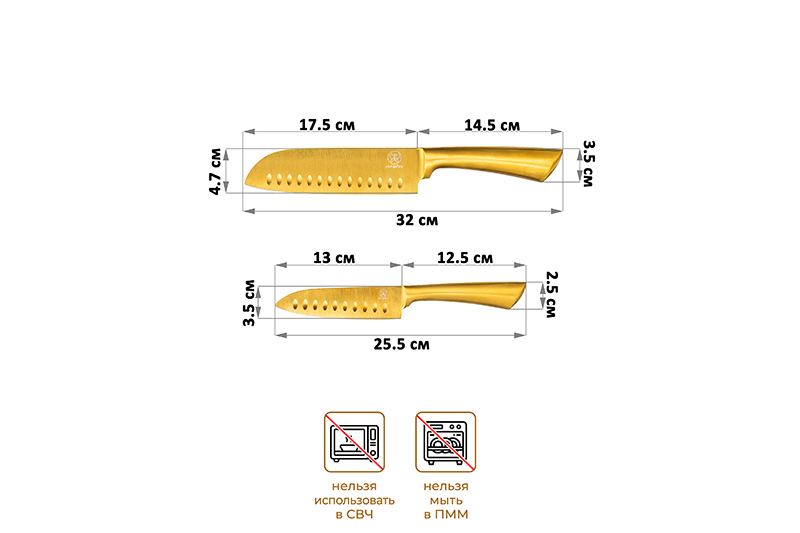 БЫЛО 1315 руб! Набор ножей 2 пр. 25,5*2,5*3,5 см + 32*3,5*4,7 см, титаново-золотой