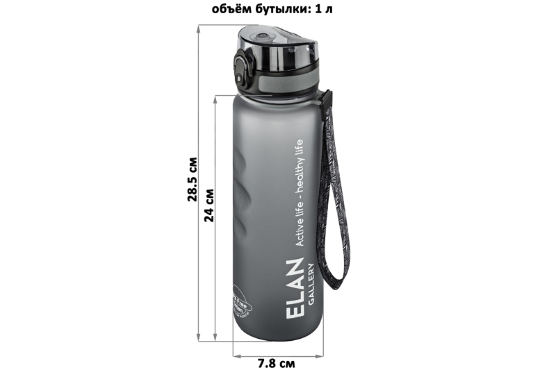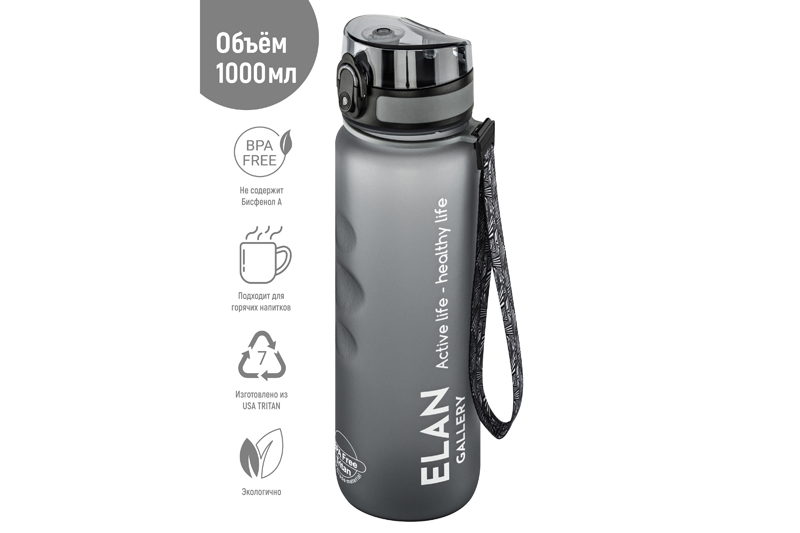 Бутылка для воды «Style Matte» от Elan Gallery – это практичное и стильное решение для ценителей активного образа жизни. Размер ёмкости – 7,8х7,8х28,5 см. Высота до крышки – 24 см. Объём – 1 литр. Изделие выполнено из тритана – прочного, безопасного материала, не содержащего бисфенол А. Этот пластик не впитывает запахи и не влияет на вкус напитков. Бутылочка подходит как для холодной, так и для горячей жидкости. Освежитесь любимыми летними напитками в жару или согрейтесь ароматным чаем зимой! Матовое покрытие и углубления для пальцев обеспечивают комфортное использование на прогулке, в офисе и на тренировке в зале. Надёжная крышка с герметичным клапаном препятствует проливанию, а встроенное ситечко позволит заваривать напитки с травами и фруктами. С удобным ремешком бутылку можно закрепить на рюкзаке или запястье – это позволяет брать её в путешествия, поездку на велосипеде или автомобиле. Многоразовая дорожная бутылка подходит как для туризма, так и для пикника на природе. Удобная форма делает её не только туристическим, но и спортивным инвентарём. Большая пластиковая ёмкость для питья – прекрасный вариант для занятий фитнесом, йогой или бегом в спортзале или на свежем воздухе. Она также дополнит занятия велоспортом в качестве велосипедного аксессуара. Это надёжный помощник спортсменам во время игры в футбол или волейбол, занятий гимнастикой и танцами. Подходит как для взрослых, так и для школьников – её можно взять в школу и на занятия физкультурой. Благодаря универсальному дизайну и серому цвету она подойдёт как девочкам, так и мальчикам в качестве школьного аксессуара. Функциональная бутылка в дизайнерской картонной упаковке – это готовый подарок для женщин и мужчин. Не подходит для микроволновой печи, посудомоечной машины и стерилизатора. В коллекции бренда Элан Галерея представлена разнообразная посуда и товары для дома на любой вкус. Спортивные аксессуары из серии «Style Matte» помогут следить за водным балансом, где бы вы ни находились!