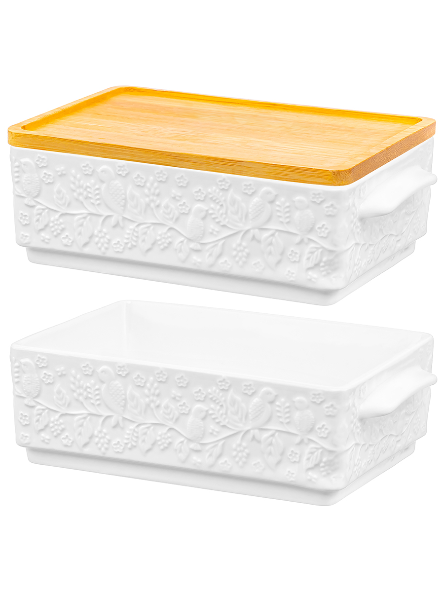 БЫЛО 1331 руб! Набор 2 блюд д/холодца 1,6 л 20,5*12*12 см "Птички на ветке" + бамбуковая крышка