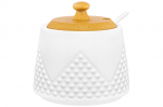 Набор посуды на бамбуковой подставке из серии «Айсберг волны» от бренда Elan Gallery предназначен для эстетичной сервировки вашего стола. Включает сахарницу с ложкой, набор для специй и встроенную салфетницу. Комплект станет воплощением прекрасного вкуса. Размер подставки – 19х12,5х14 см. По центру она оснащена ручкой в виде металлической оси с круглым декоративным элементом. Выполнена из натурального бамбука. Посуда выполнена из высококачественного белого фарфора. Он не впитывает цвет продуктов и легко отмывается, благодаря чему надолго сохраняет свою белизну. Поверхностьизделия украшают рельефные узоры в виде поперечных волн. Размер сахарницы – 9х9х11 см, объём – 350 мл. Подойдёт для сахара, соли и других сыпучих продуктов. Подайте её вместе с горячими блюдами, чтобы каждый мог приправить пищу по своему вкусу. Приспособьте под варенье, мёд или икру. Ложечка позволит удобно набрать необходимое количество продуктов и компактно помещается в баночке благодаря выемке на бамбуковой крышке. Набор для специй позволит держать под рукой необходимые приправы. Размер каждой ёмкости – 5х5х7 см, объём – 75 мл. Наполняются через отверстие снизу и закрываются пластиковой пробкой. Салфетница послужит для компактного хранения салфеток и бумажных полотенец. Не рекомендуется применять абразивные моющие средства. Фарфоровые ёмкости подходят для использования в посудомоечной машине и микроволновой печи. Бамбуковые и металлические элементы нельзя замачивать. Поставляются в дизайнерской картонной коробке – благодаря ей вам не потребуется дополнительная подарочная упаковка. Фарфоровая сервировочная посуда будет оригинальным подарком для тех, кто ценит сочетание практичности и привлекательности. Серия «Айсберг волны» от бренда Элан Галерея станет украшением любого кухонного инвентаря и позволит собрать красивый сервиз в едином стиле!
