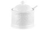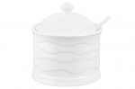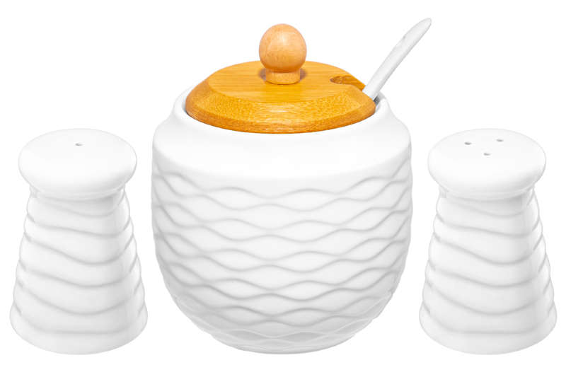 БЫЛО 1370 руб! Набор - сахарница 350 мл "Айсберг волны" с ложкой + солонка + перечница + салф.на дер.подст.с ручкой
