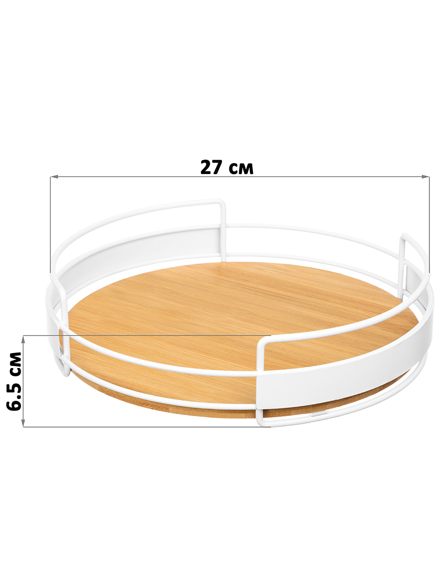 БЫЛО 1510 руб! Поднос 27*27*6,5 см с металлическими ручками, круглый, бамбук