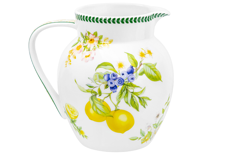 Кувшин Elan Gallery "Лимоны" объёмом 1,2 литра и размером 16х13х15,5 см выполнен из фарфора нового поколения new bone china. New bone china сочетает в себе изящность и высокую прочность. От других видов костяного фарфора материал отличается большей экологичностью в производстве. Серия "Лимоны" украшена ярким принтом с сочными лимонами, синими ягодками и нежными цветочками. Благодаря оригинальному дизайну кувшинчик станет нарядным дополнением вашей кухни. Фарфоровый сосуд удобен для питьевой воды или молока. Кувшин – это прекрасная альтернатива скучным пакетам сока и подходит для сервировки компотов, коктейлей и любых других напитков. Кухонный инвентарь можно использовать как молочник или лимонадник, а также для украшения интерьера в роли декоративной вазы. Поставьте в него веточки и цветы, а также используйте как предмет декора на столе или полке без наполнения. Фарфоровая посуда отличается от керамической повышенной плотностью. Фарфор не впитывает цвет напитков и не деформируются от влаги, чему может быть подвержена керамика. Не рекомендуется применять абразивные моющие средства. Можно мыть в посудомоечной машине и ставить в микроволновую печь. Поставляется в картонной коробке. Кувшин станет украшением интерьера вашего дома и чудесным подарком на праздник. Благодаря красочной коробочке не понадобится подарочная упаковка. Особенно оценят хозяйки, которые любят красивую сервировку в будни и на праздник. В коллекции бренда Элан Галерея можно найти много столовой посуды и товаров для дома, в том числе стильные кувшины и графины. Коллекция "Лимоны" позволит собрать целый сервиз на ваш вкус!