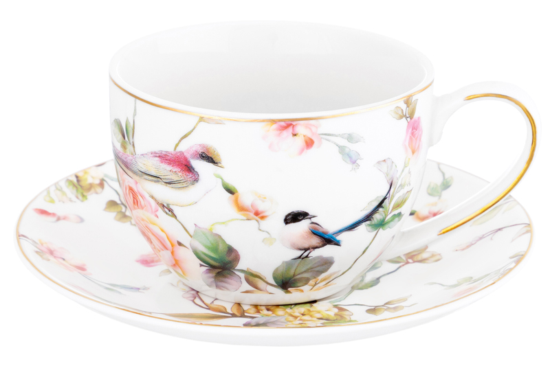БЫЛО 1576 руб! Чайная пара 4 пр. 250 мл 12,5*9*6,5 см "Певчие птички" фарфор NEW BONE CHINA