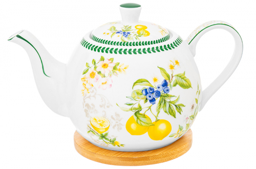 БЫЛО 1609 руб! Чайник 1,1 л 23*13,5*14,5 см "Лимоны" на бамбуковой подставке, NEW BONE CHINA