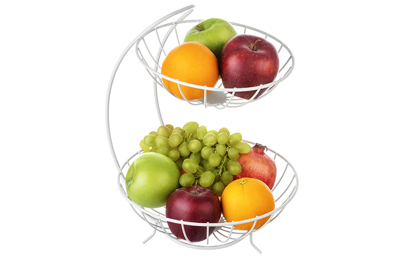 Корзина для фруктов ELCASA белого цвета 28х26,5х35,5 см с двумя ярусами выполнена из прочного металла и обладает оригинальным геометрическим дизайном. Каждый ярус представляет собой изящную чашу в виде металлической сетки (размер нижней корзины – 26,5х26,5 см, размер верхней корзины – 21,5х21,5 см). Металлическое блюдо – это универсальное решение для интерьера вашего дома или офиса. Можно разместить в вазе фрукты на кухне, а также украсить корзинкой гостиную или приемную. Фруктовница эстетично впишется в самые разные стили интерьера: лофт, сканди, минимализм. Удобный кухонный аксессуар для сервировки овощей и фруктов поможет организовать порядок на вашей кухне. Сервировочная фруктовая подставка не только дополнит декор праздничного стола, но и подойдет для пикника. Такая стильная посуда порадует ваших гостей и сделает застолье еще приятнее! Набор не подходит для ПММ. Большая настольная корзина для фруктов станет отличным подарком для женщин на любой праздник. Подарите её маме, бабушке, сестре – такой вещи будет рада каждая хозяйка. Двухъярусная сетчатая корзина для фруктов сможет стать настоящим украшением вашей кухни или приятным подарком для родных и близких!