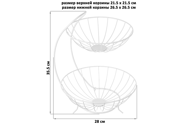 БЫЛО 1619 руб! Корзина для фруктов 28*26,5*35,5 см "Белая" двухъярусная