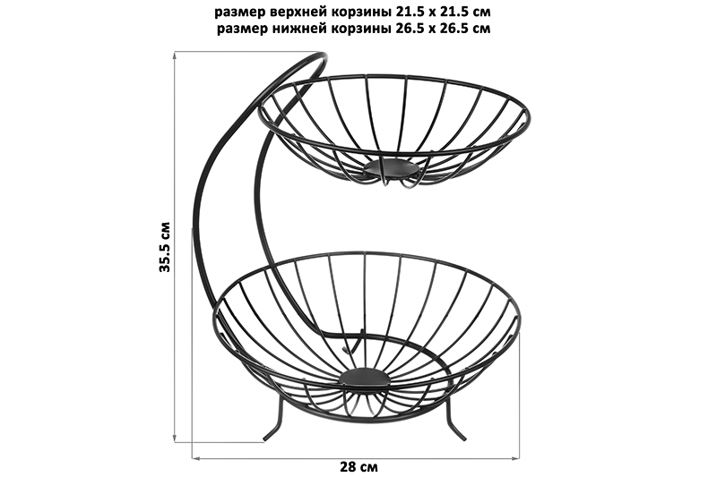 БЫЛО 1619 руб! Корзина для фруктов 28*26,5*35,5 см "Черная" двухъярусная