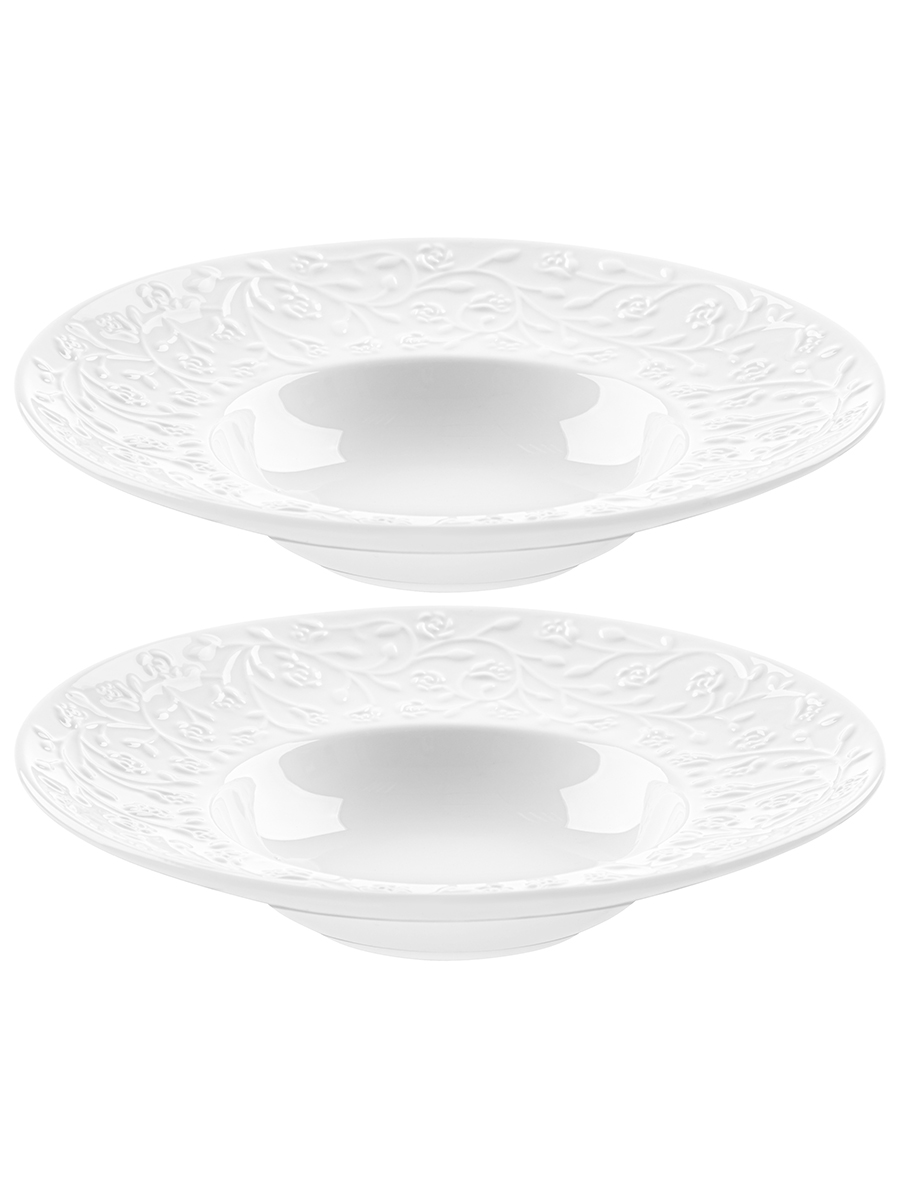 Набор 2 тарелок Elan Gallery "Веточки-цветочки" размером 25х25х5,5 см каждая выполнен из белого фарфора. Внутренний диаметр каждой суповой тарелки 13,5 см, объём – 270 мл, размер дна 8,5 см. Посуда серии украшена рельефным узором в виде изящных веточек с маленькими цветочками. Глубокие круглые тарелочки подойдут для подачи супов, бульонов и каш. Эргономичная форма посуды позволяет использовать её также для любых блюд: рагу, салатов, пасты. Подойдут для сервировки как на праздник, так и в будни. Не рекомендуется применять абразивные моющие средства. Можно использовать в микроволновой печи и мыть в посудомоечной машине. Блюда поставляются в картонной упаковке. Набор станет отличным подарком для любой хозяйки, которая ценит стильную сервировку. Понравится любителям посуды в скандинавском стиле. Серия "Веточки-цветочки" позволит собрать сервиз в едином стиле и сможет стать настоящим украшением вашего дома.