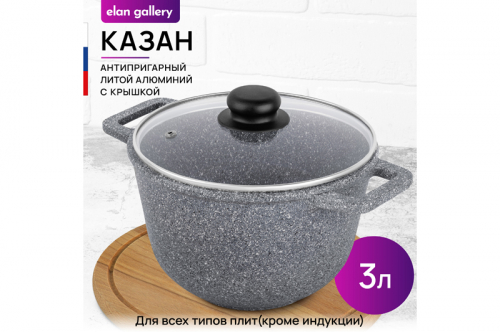 БЫЛО 1655 руб! Сковорода глубокая 18 см ГАРМОНИЯ ВКУСА "Серый мрамор" С КРЫШКОЙ ф18, н/р, 33,5*19*10 см