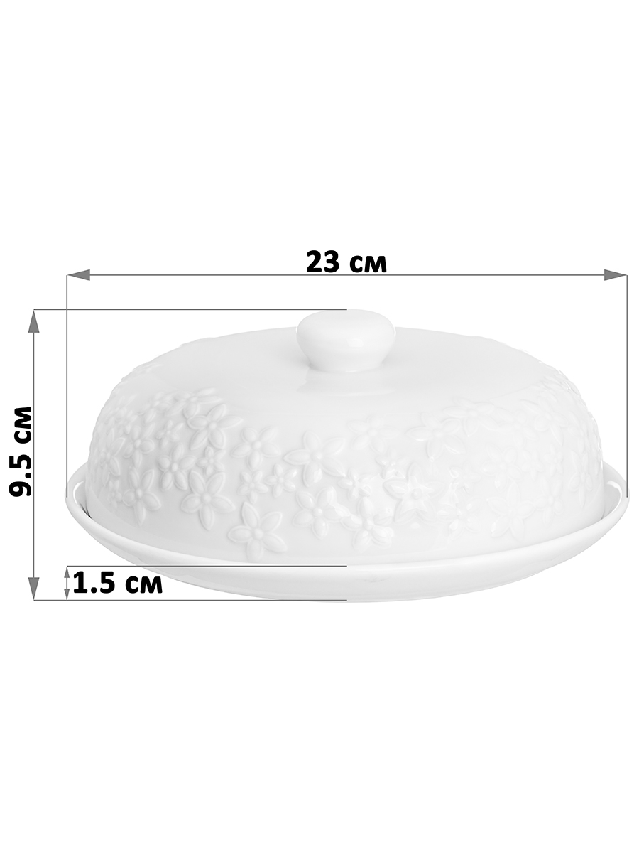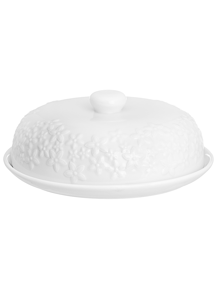Блинница с крышкой Elan Gallery "Цветочки" размером 23х23х9,5 см выполнена из белого фарфора и украшена изящным рельефным узором. Высота без крышки 1,5 см. Можно использовать не только для хранения блинчиков и оладий, но и подачи печенья, кусочков торта и пирога. Под крышкой блины долго не остынут и сохранят свой первозданный вид и вкус. Блинница эстетично смотрится на столе и подойдёт для сервировки нарезки, бутербродов и выпечки. Блюдо с крышкой можно использовать для подачи сыра, шашлыка, пиццы, а также фруктов, десерта и разноса любых закусок на празднике. Фарфоровая посуда отличается от керамической повышенной плотностью. Фарфор не впитывает цвет продуктов и не деформируется от влаги, чему может быть подвержена керамика. Не рекомендуется применять абразивные моющие средства. Тарелку с крышкой можно использовать в посудомоечной машине и микроволновой печи. Поставляется в стильной картонной упаковке. Красивый кухонный инвентарь – отличный подарок для любой хозяйки! Сервировочное блюдо станет украшением вашего стола как на праздник, так и в будни и поможет сохранить тепло и аромат продуктов.