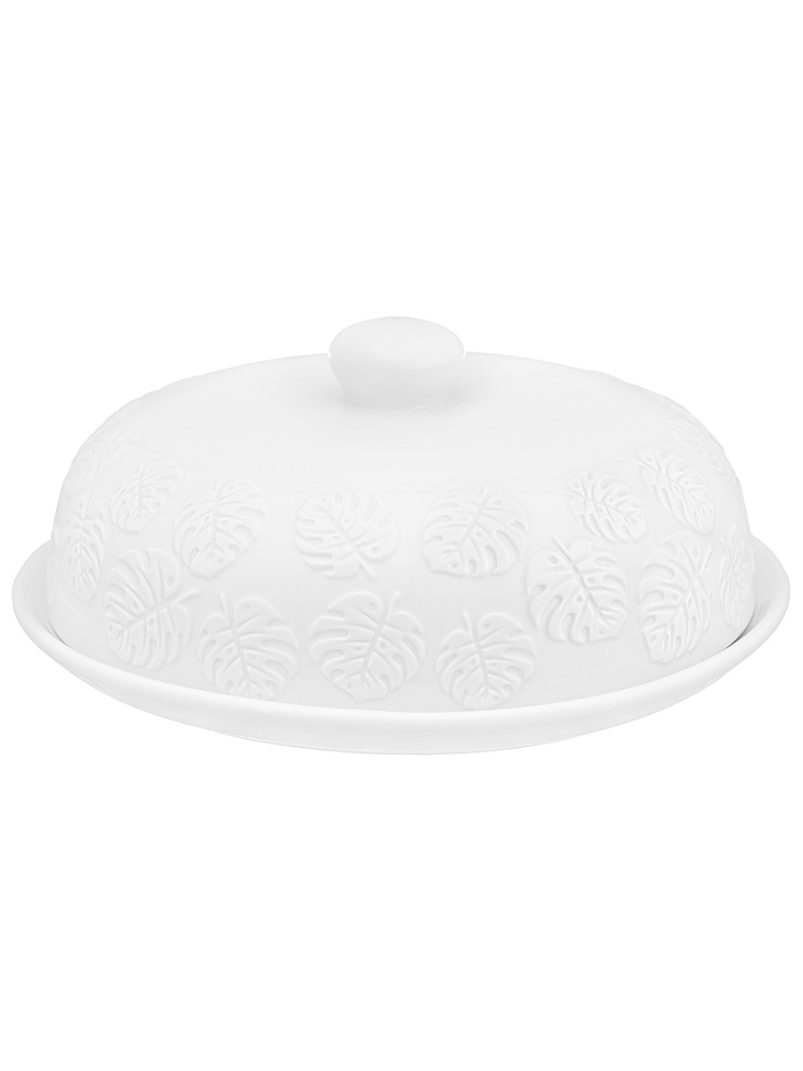 Блинница с крышкой Elan Gallery "Тропики" размером 23х23х9,5 см выполнена из белого фарфора и украшена изящным рельефным узором. Высота без крышки 1,5 см. Можно использовать не только для хранения блинчиков и оладий, но и подачи печенья, кусочков торта и пирога. Под крышкой блины долго не остынут и сохранят свой первозданный вид и вкус. Блинница эстетично смотрится на столе и подойдёт для сервировки нарезки, бутербродов и выпечки. Блюдо с крышкой можно использовать для подачи сыра, шашлыка, пиццы, а также фруктов, десерта и разноса любых закусок на празднике. Фарфоровая посуда отличается от керамической повышенной плотностью. Фарфор не впитывает цвет продуктов и не деформируется от влаги, чему может быть подвержена керамика. Не рекомендуется применять абразивные моющие средства. Тарелку с крышкой можно использовать в посудомоечной машине и микроволновой печи. Поставляется в стильной картонной упаковке. Красивый кухонный инвентарь – отличный подарок для любой хозяйки! Сервировочное блюдо станет украшением вашего стола как на праздник, так и в будни и поможет сохранить тепло и аромат продуктов.