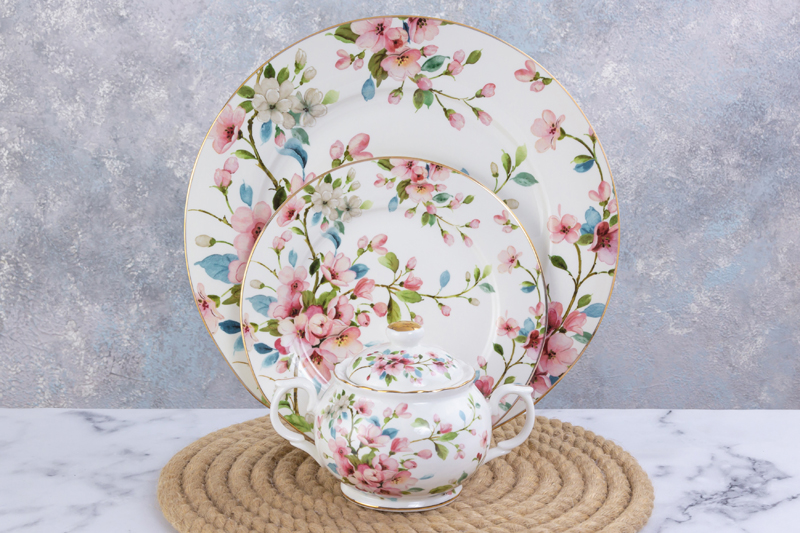 БЫЛО 1707 руб! Набор тарелок 2 пр. 26*26*2 см "Яблоневый цвет на белом" NEW BONE CHINA