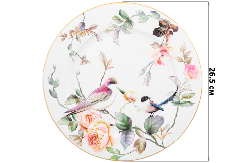 БЫЛО 1727 руб!! Набор тарелок обеденных 2 пр. 26,5*26,5*2 см "Певчие птички" фарфор NEW BONE CHINA