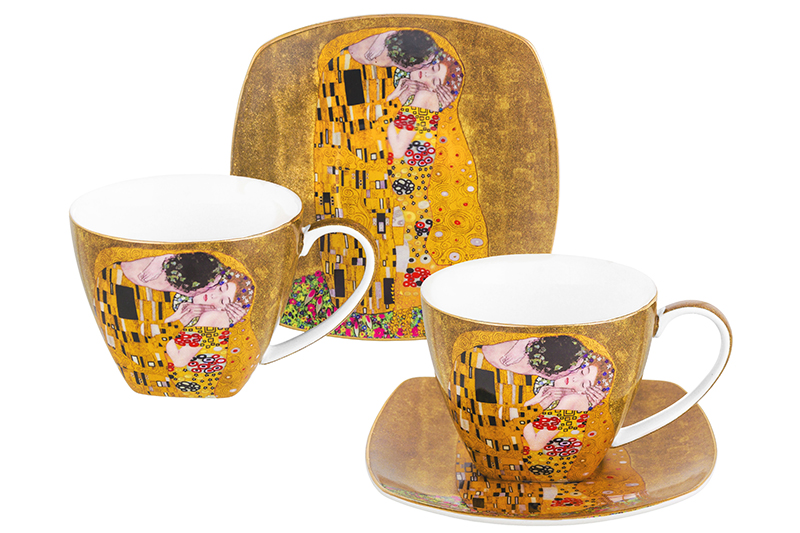 Набор "Поцелуй" состоит из 2-х чайных пар: 2-х чашек объемом по 250 мл каждая и 2-х блюдечек. Набор украшен роскошными репродукциями картины "Поцелуй" Густава Климта. Чайные пары выполнены из высококачественного фарфора New Bone China. Это фарфор нового поколения, не уступающий традиционному костяному по качеству, но при этом гораздно более экологичный в производстве. Чайные пары украшены золотым окаймлением. Чайные пары нельзя использовать в микроволновой печи и посудомоечной машине. Набор из 2-х чайных пар поставляется в подарочной картонной упаковке и сможет стать приятным подарком для ваших родных и близких!