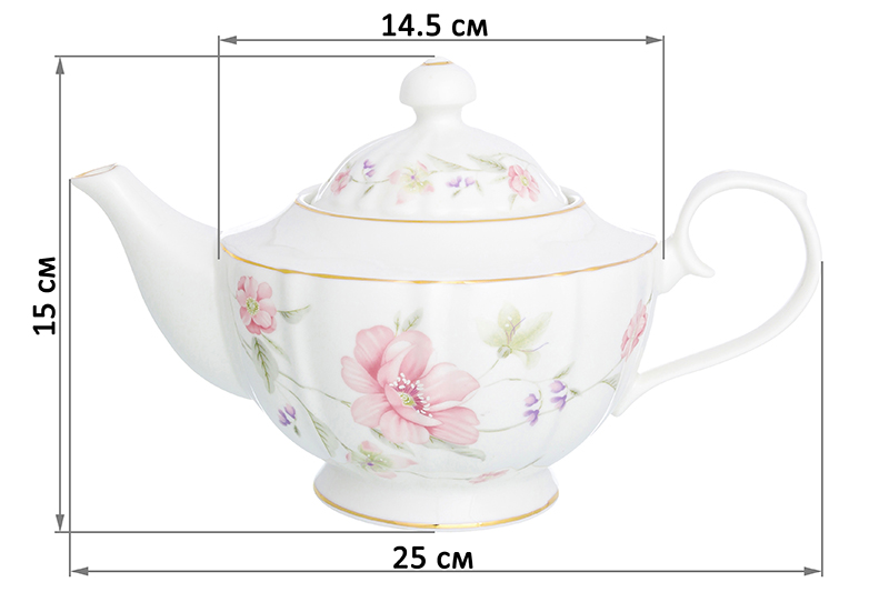БЫЛО 1815 руб! Чайник 1 л 25*14,5*15 см "Диана" на ножке, фарфор, NEW BONE CHINA