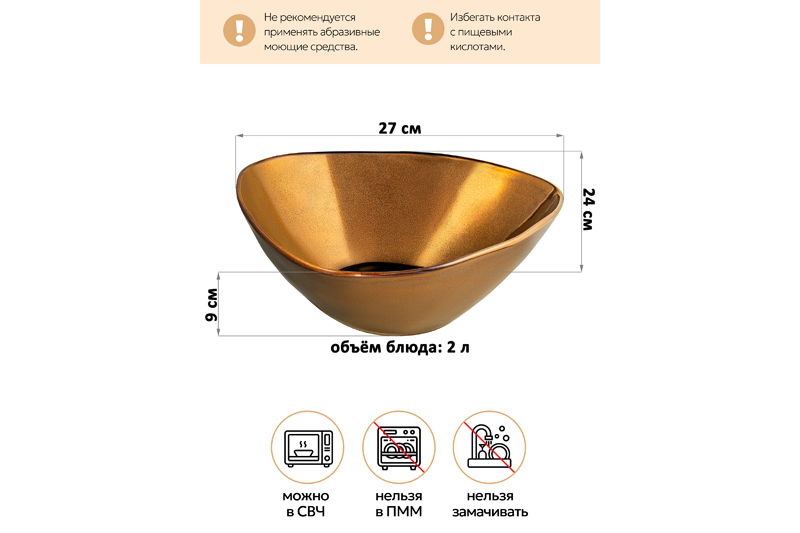БЫЛО 1868 руб! Салатник 27*24*9 см 2 л "Бронза"