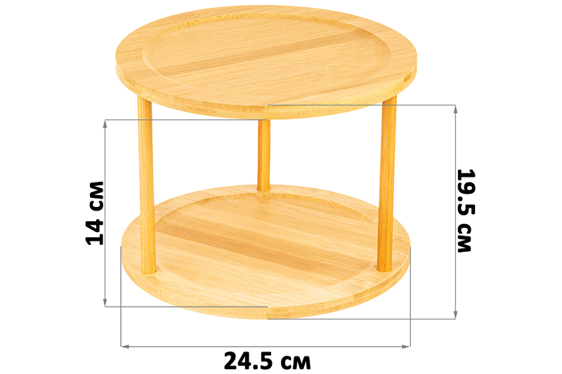 БЫЛО 1922 руб!! Подставка 2-уровневая 24,5*24,5*19,5 см, многофункциональная, вращающаяся, бамбук