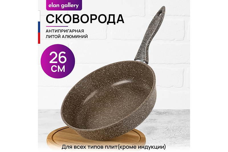 БЫЛО 1949 руб! Сковорода глубокая 26 см ГАРМОНИЯ ВКУСА "Коричневый опал" без крышки, н/р, 45,5*27*12 см