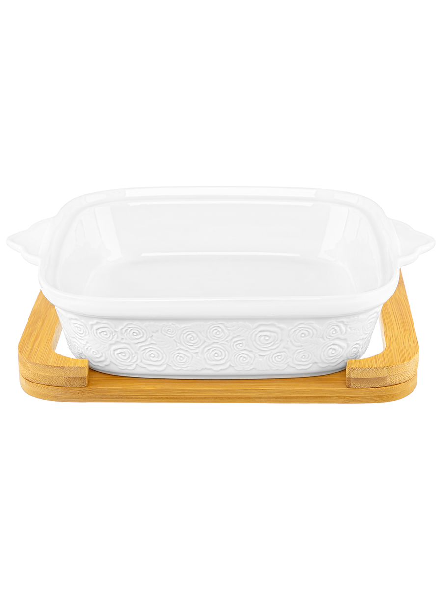 Блюдо из серии «Розы» от Elan Gallery предназначено для приготовления и эстетичной подачи ваших любимых блюд. Размер изделия – 29х24х13 см, объём – 1,3 литра. Внутренний размер блюда – 21х20,5 см. Выполнено из высококачественного белого фарфора. Он не впитывает цвет продуктов и легко отмывается, благодаря чему надолго сохраняет свою белизну. Поверхность изделия украшают рельефные узоры в виде пышных бутонов роз. Крышка выполнена из стекла, ручка на крышке и подставка выполнены из натурального бамбука. Изделие подойдёт для подачи сельди под шубой, салатов и плова. Используйте глубокую ёмкость в роли шубницы, чтобы порадовать гостей любимым праздничным блюдом. Послужит в качестве салатника или для подачи закусок из мяса и рыбы. Такая посуда поможет вам в приготовлении заливного и желе. Крышка поможет сохранить температуру блюд, а удобная деревянная ручка облегчит её снятие и не даст обжечься. Подставка защитит поверхности от воздействия высоких температур и послужит в качестве подноса для безопасной и комфортной подачи блюда к столу. Без крышки и подставки блюдо подойдёт для запекания бисквита и творожных запеканок. Изделие подойдёт для сервировки большого брикета мороженого, которое можно разделить с семьёй или друзьями. Не рекомендуется применять абразивные моющие средства. Без крышки и подставки подходит для использования в посудомоечной машине, микроволновой печи и духовом шкафу при температуре до 230 градусов. Бамбук нельзя замачивать! Поставляется в дизайнерской картонной коробке – благодаря ей вам не потребуется дополнительная подарочная упаковка. Фарфоровая сервировочная посуда будет оригинальным подарком для хозяйки, ценящей не только практичность, но и привлекательность. Серия «Розы» от бренда Элан Галерея станет украшением любого кухонного инвентаря и позволит собрать красивый сервиз в едином стиле!