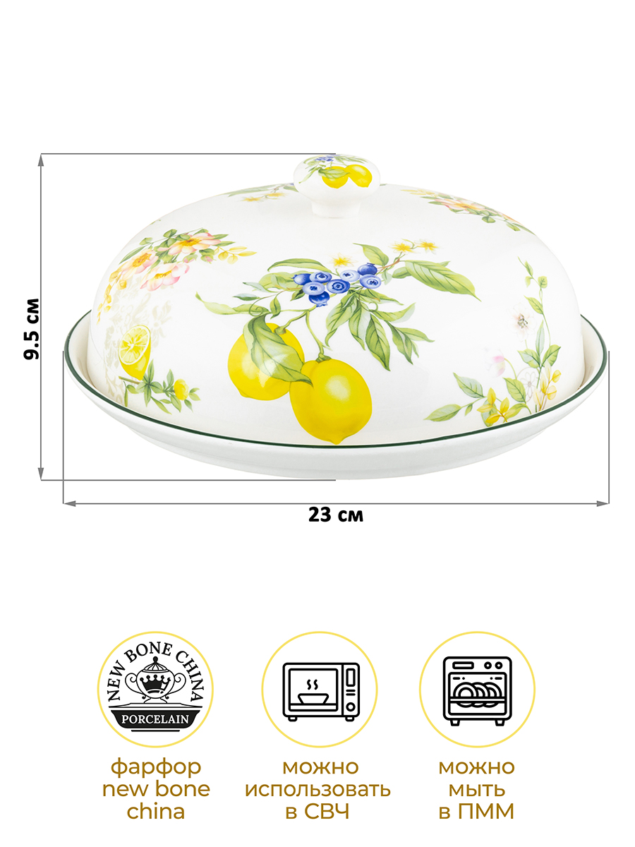 БЫЛО 2066 руб! Блинница 23*23*9,5 см "Лимоны" фарфор NEW BONE CHINA