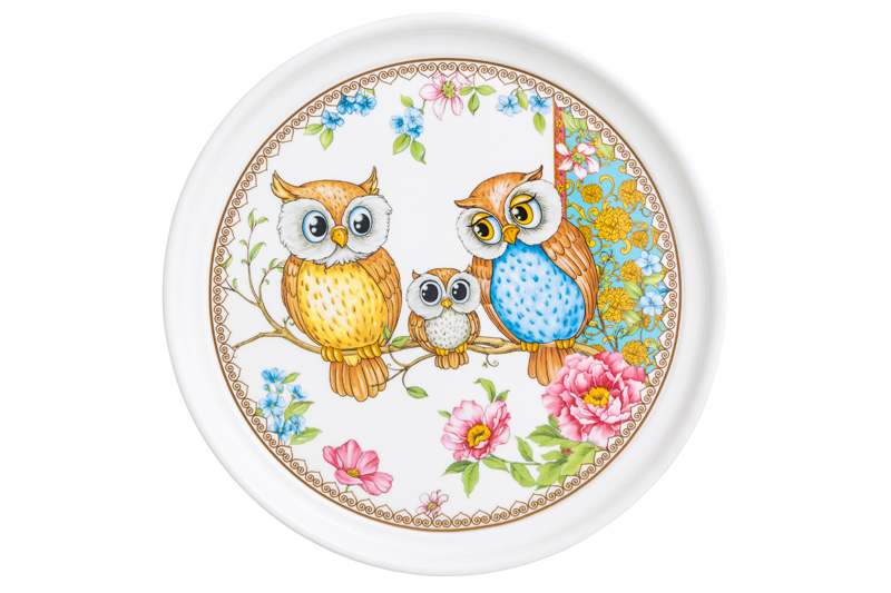 БЫЛО 2066 руб! Блинница 23*23*9,5 см "Совушки" фарфор NEW BONE CHINA