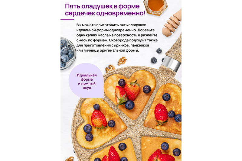 БЫЛО 2088 руб! Сковорода для оладий 26 см ГАРМОНИЯ ВКУСА "Медовый гранит" сердце н/р, 48*27*5,5 см
