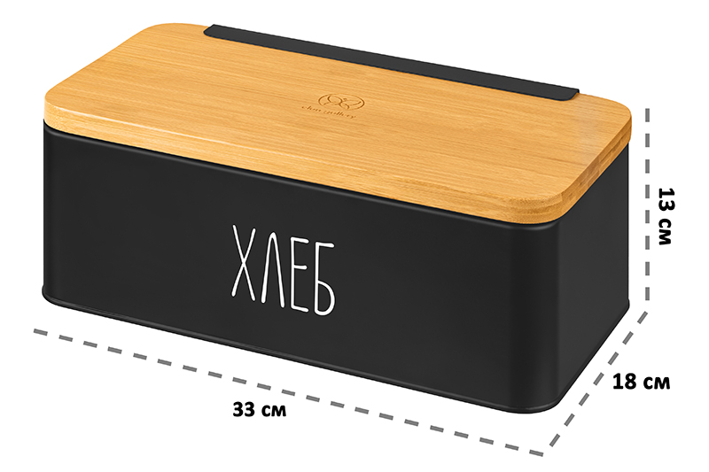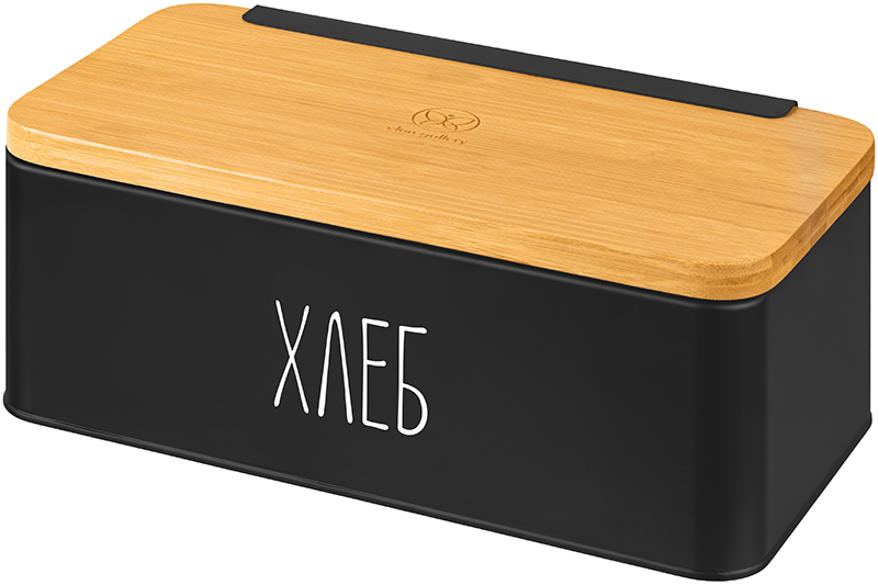 БЫЛО 2268 руб! Хлебница 33*18*13 см "Черная" с бамбуковой крышкой - доской (с надписью хлеб)