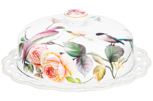 БЫЛО 2325 руб! Блинница 26*26*11,5 см "Певчие птички" фарфор NEW BONE CHINA