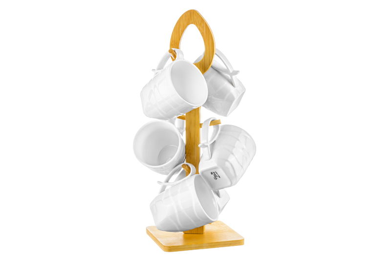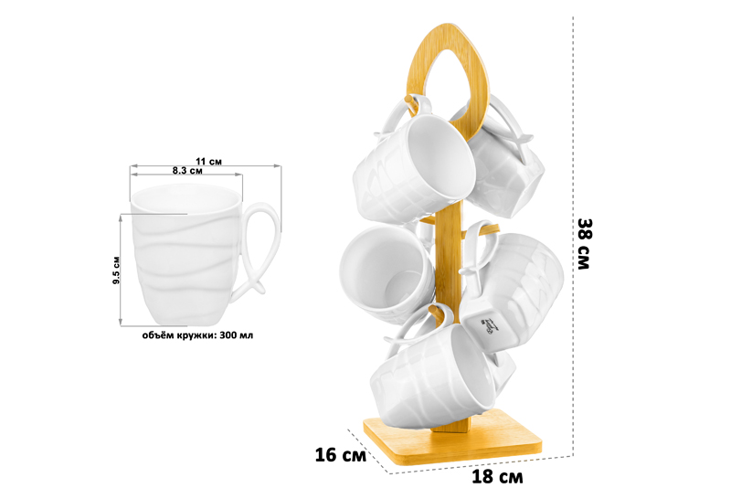 БЫЛО 2732 руб! Набор 6 кружек 300 мл 16*18*38 см "Айсберг волны" на дерев. подставке с ручкой