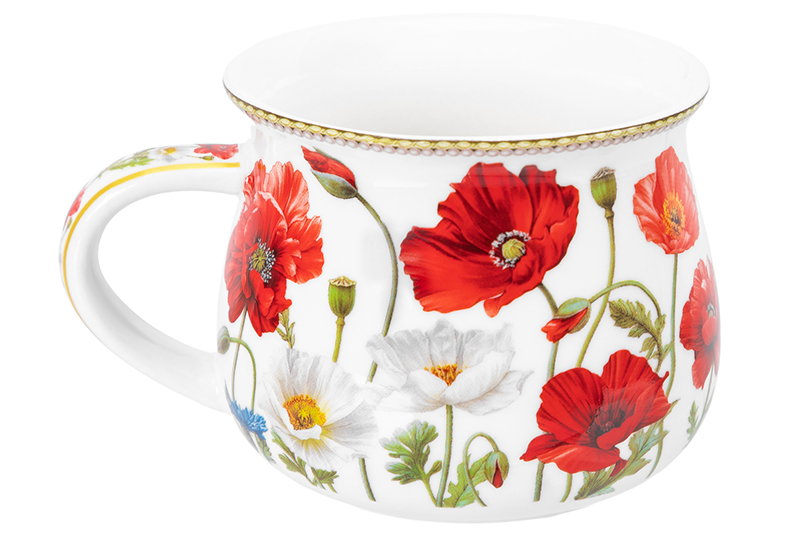 БЫЛО 350 руб! Кружка 250 мл 11*8,5*7 см "Маки" бочонок фарфор NEW BONE CHINA
